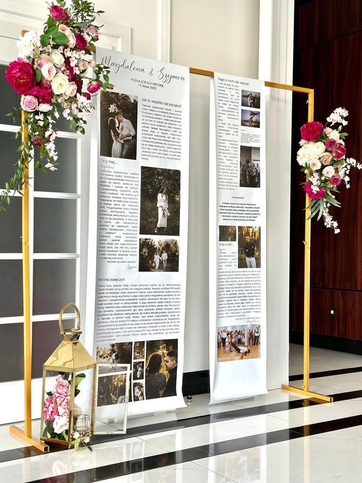 Na plakacie może się znaleźć: historia Waszego poznania, zaręczyn, on o niej…, ona o nim…, podziękowanie dla gości, 5 faktów o Was.